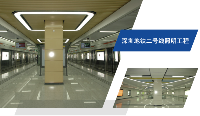 深圳地鐵二號線,又名深圳地鐵蛇口線,是中國廣東省深圳市第二條建成運營的地鐵線路,也是國內全城采用 LED 照明燈具的地鐵。深圳地鐵全面推行 LED 綠色照明,車站、場段及區間所有光源均采用 LED 燈。作為一種新型的綠色照明,與地鐵采用的傳統熒光燈相比,LED 燈有高節能、長壽命、多變幻、利環保、安全性強、反應靈敏、顯色指數高、效率高等特點。
