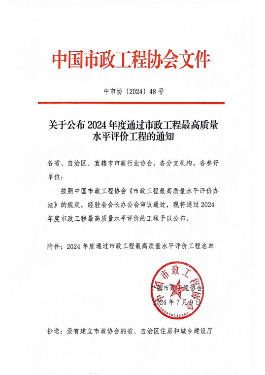 市政工程最高質(zhì)量水平評價(jià)(原中國市政金杯示范工程)由中國市政工程協(xié)會組織實(shí)施,是市政工程行業(yè)在工程質(zhì)量方面最高的質(zhì)量水平評價(jià),代表市政工程行業(yè)同時(shí)期國內(nèi)先進(jìn)水平。