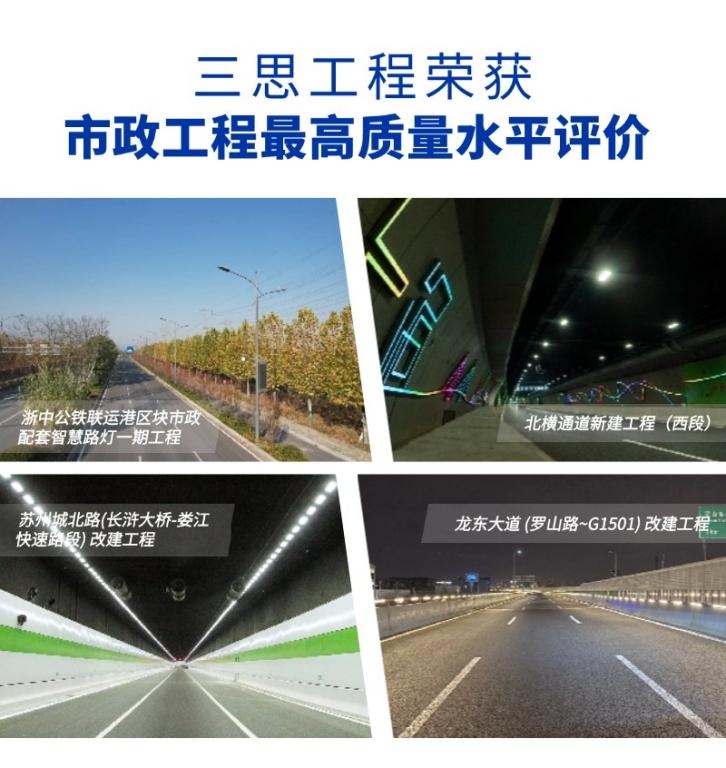 近日,中國市政工程協(xié)會公布“2024年度通過市政工程最高質(zhì)量水平評價(jià)工程名單”,浙中公鐵聯(lián)運(yùn)港區(qū)塊市政配套智慧路燈一期工程(縱一、縱二、清照路)EPC 項(xiàng)目、北橫通道新建工程(西段)、蘇州城北路(長滸大橋-婁江快速路段) 改建工程及龍東大道 (羅山路~G1501) 改建工程在內(nèi)由三思所承建的多項(xiàng)市政照明工程獲“2024年度市政工程最高質(zhì)量水平評價(jià)”。
