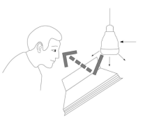 直接眩光:視野內裸露光源光線直接進入人眼 反射眩光:光源經過反射射入人眼