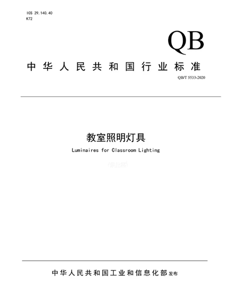 工業(yè)和信息化部2020年12月9日發(fā)布公告,新的行業(yè)標準QB/T 5533-2020《教室照明燈具》將于2021年4月1日正式實施。照明質量模擬計算的數據、運用燈具維護系數的評價方法等諸多方面成為該標準的新亮點。