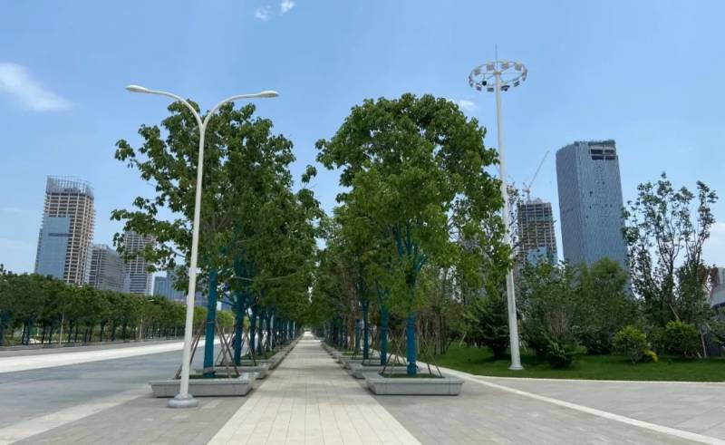 除高桿燈外,西安奧體中心廣場公共區域的路燈,亦采用三思陶瓷散熱LED路燈。三思團隊針對道路的定制化配光設計,路面亮度、均勻度等關鍵照明指標均得到大幅度提升。