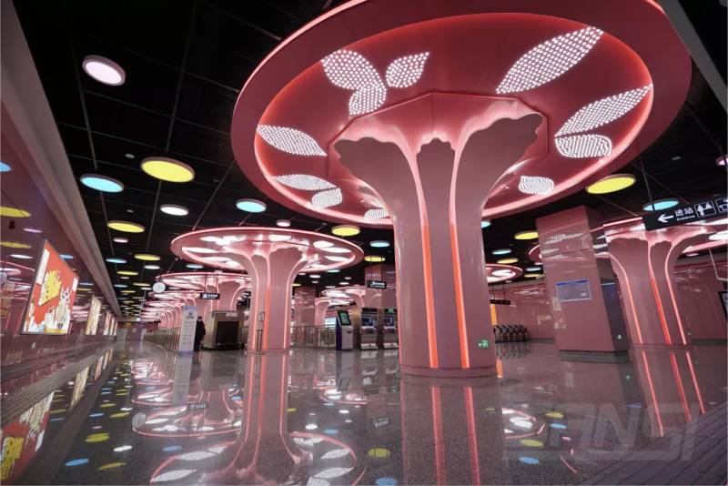 以錢湖南路站為例,該站以“繁花綻放”為主題,支柱造型設(shè)計(jì)為寧波市市花山茶花,寓意莘莘學(xué)子活力四射的精神面貌。三思發(fā)揮強(qiáng)大的定制能力,打造舒適而又富有特色的LED照明環(huán)境,造型獨(dú)特的異形燈在起到照明作用的同時(shí),又很好地改善了地下空間原本沉悶的氛圍,增加了許多趣味性和藝術(shù)性,讓整個(gè)空間變得更加明亮又浪漫。