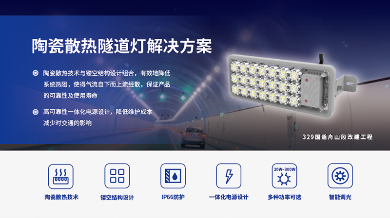 在城市道路及隧道區,三思將陶瓷散熱路燈和反射式隧道燈搬上了“舞臺”。陶瓷散熱技術為三思自主研發,能更大程度地降低產品熱阻、提高壽命;反射式隧道燈采用863重大課題成果“反射式發光技術”,出光光線柔和均勻,大大提高了隧道照明舒適性。