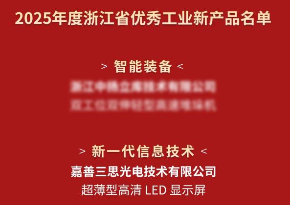 近日,2025年度浙江省優秀工業新產品名單正式公布,嘉善三思光電技術有限公司憑借“超薄型高清LED顯示屏”成功入選,再次彰顯了企業在LED顯示技術領域的創新實力與行業領先地位。作為一家扎根嘉善的高新技術企業,嘉善三思光電始終以技術研發為核心,為客戶提供高品質的LED顯示解決方案,推動行業高質量發展。