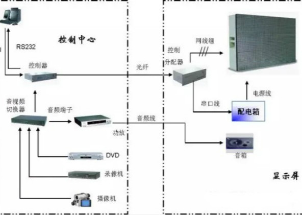 LED顯示屏安裝方案主要分為:顯示屏安裝順序、安裝電源接收卡、安裝單元模組、LED顯示屏控制系統(tǒng)連接。