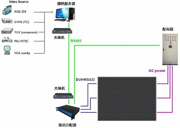 LED顯示配電系統(tǒng),通常情況下顯示屏用電功率≤5kw可采用 AC 220V,即單相三線制供電;通常情況下屏體總用電功率≥5kw建議采用 AC 380V,即三相四線制或三相五線制供電。